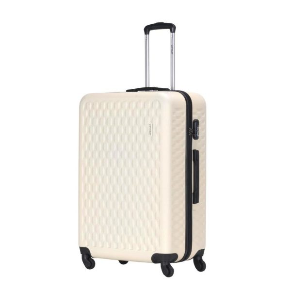 ? Elegance and Durability: This luggage collection consists of four distinct sizes to accommodate your unique travel requirements: 20 Inch, 24 Inch, 28 Inch, and 32 Inch. Crafted from premium ABS material, these hard side spinners provide robust protection for your cherished belongings. The sturdy ABS shell not only withstands the rigors of travel but also boasts a timeless and sophisticated off-white finish.
