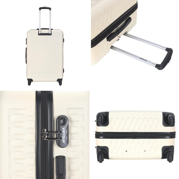 VIPTOUR 4 Piece ABS Hard Side Spinner Trolley Luggage Set With TSA Lock 20/24/28/32 Inch, VT-A389 Off White