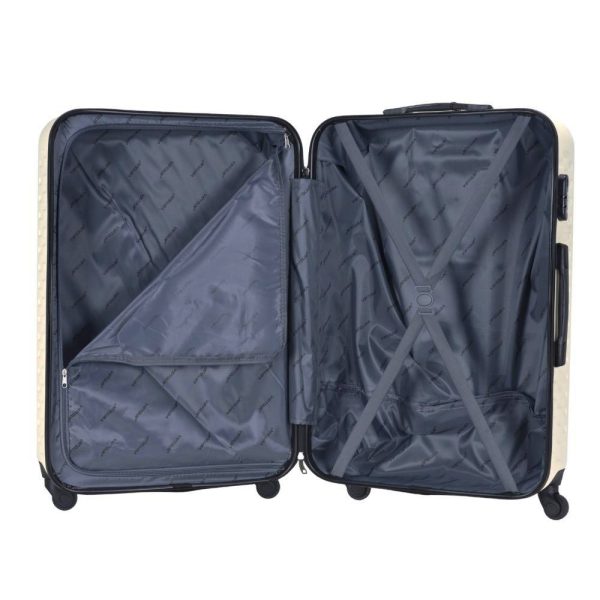 ? Versatile and Suitable for All: This luggage set is perfect for everyone, with a unisex design that caters to a wide range of travelers. Whether you?re a solo explorer or journeying with a group, the VT-A389 Off White 4 Piece ABS Hard Side Spinner Trolley Luggage Set adapts to your needs.