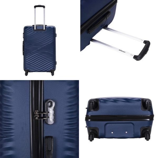 VIPTOUR Hard Shell 3 Piece ABS Trolley Luggage Sets 20/24/28 Inches, VT-A393 Dark Blue