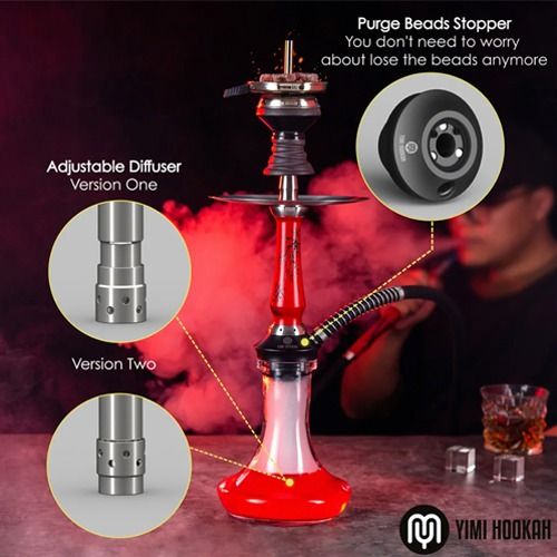 Yimi Hookah V2A Stainless Steel Hookah Set Wooden Hookah Include Hookah Tray Shisha Charcoal Holder Shisha Mouthpiece Silicone Bowl Hookah Tong – Yimi Hookah Thunder Red